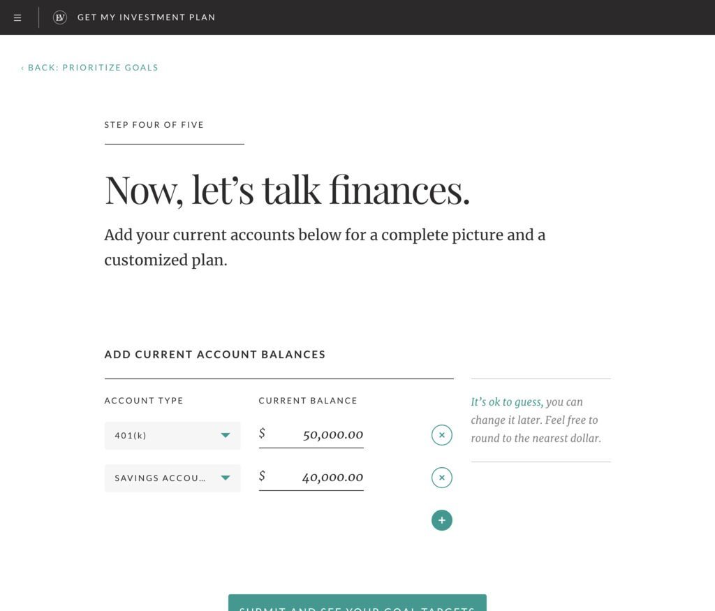 From this point forward it’s all about entering your personal details so Ellevest can calculate the best advice and methods for your specific investment plan.